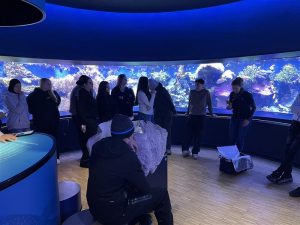 Die Klasse 8a widmete ihre Projektwoche dem Thema Nachhaltigkeit und Meeresschutz. Zum Auftakt besuchte sie das Löbbecke Museum / Aquazoo in Düsseldorf, wo sie viel über den Schutz der Meere erfuhren und Aquariumsbewohner für eigene künstlerische Arbeiten fotografierten. Am nächsten Tag ging es in der Natur-Schule Grund um die Biologie der Bäche, bevor die Klasse am Mittwoch in der Kläranlage Unterburg des Wupperverbands erfuhr, wie aus Abwasser wieder sauberes Wasser wird. Am Donnerstag sammelten die Schüler:innen in der Innenstadt Zigarettenkippen, um sichtbar zu machen, wie viel Grundwasser durch richtige Entsorgung geschützt werden kann. Zum Abschluss entstanden am Freitag künstlerische Fischbilder, und Aktivistinnen von Sea Shepherd berichteten aus ihrer Arbeit im internationalen Meeresschutz.