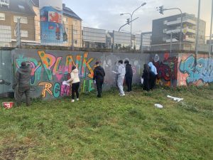 Die Klasse 8b beschäftigte sich eine Woche lang intensiv mit der Hip-Hop-Kultur. Neben der Gestaltung eigener Plakatwände setzten sich die Schüler:innen praktisch mit den wichtigsten Elementen des Hip-Hop auseinander: In einer Beat-, Rap- und Graffiti-School wurden Grundlagen vermittelt und ausprobiert, und gemeinsam entstand eine eigene Hip-Hop-Tanzchoreografie. Ein Höhepunkt der Woche war der Besuch der Kraftstation in Remscheid, die einen Tanzraum, ein Tonstudio und legale Graffitiflächen zur Verfügung stellte. Am Ende der Woche rundeten selbstgemachte Pizza und der Hip-Hop-Kultfilm Beat Street die vielfältigen Einblicke ab. Die Klasse bedankt sich herzlich bei allen Expert:innen und Unterstützer:innen, die das Projekt begleitet haben.